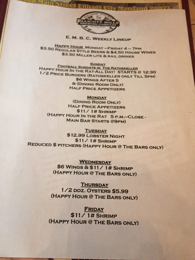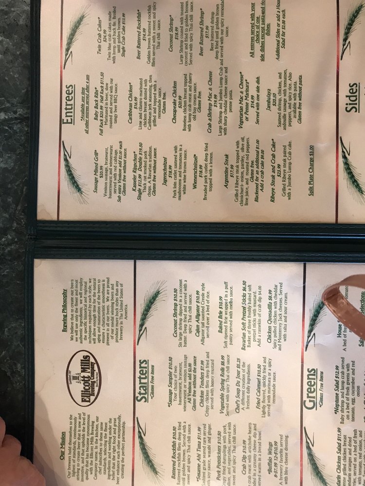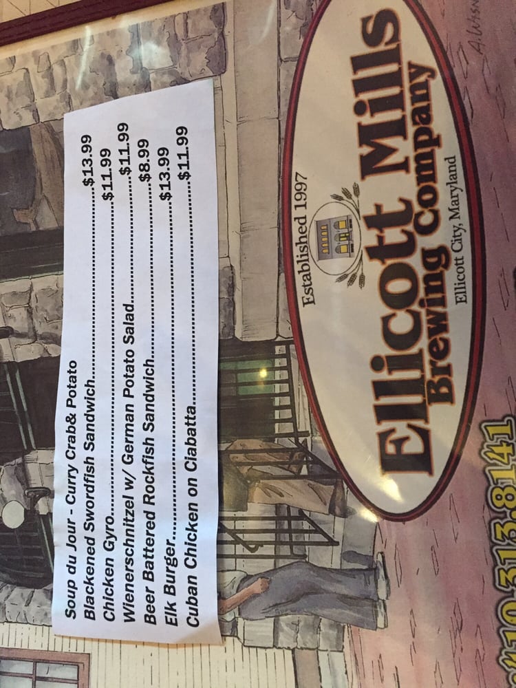 Ellicott Mills Brewing Co is a vibrant American brewery located in Ellicott City, MD. This casual establishment offers a diverse menu with dishes like Battered Rock Fish, Sesame Ahi Tuna, and Pork Potstickers. Their starters include Vegetarian Chili and Fried Calamari, while their greens section features Mandarin Chicken Salad and Stuffed Avocado Salad. Customers praise the atmosphere, with drag shows and diverse events adding to the welcoming ambiance. Reviewers highlight the friendly and knowledgeable staff, with servers like Jen providing excellent recommendations on food and beer pairings. The Jack Frost beer and burger receive particular praise for their flavors. Overall, Ellicott Mills Brewing Co is a place to enjoy delicious food, refreshing drinks, and entertaining events in the heart of Old Ellicott City.